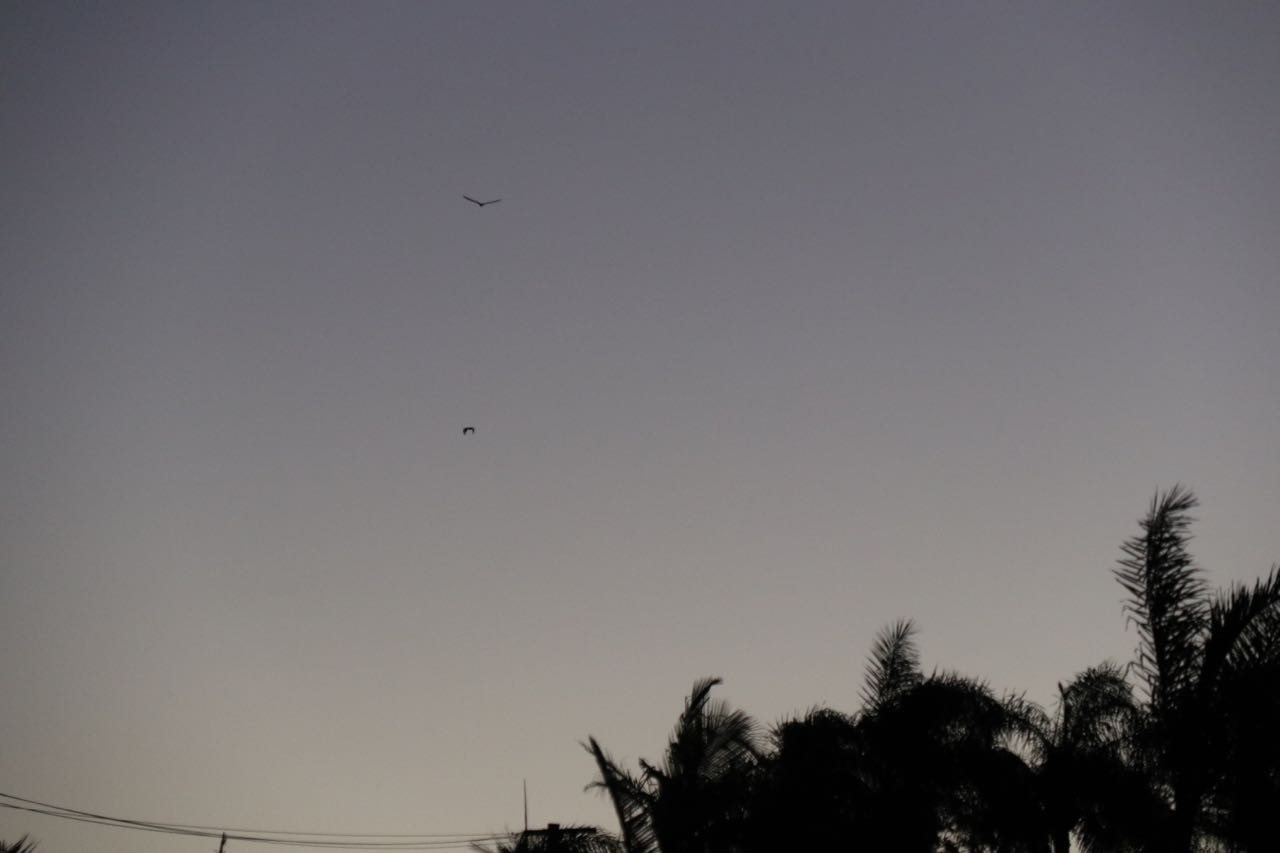 It is back to the issue of the light, and the remains of the day, as it were. Each evening, once the sun is down but there remains that little bit of twilight (brief as it is), the flying foxes, or fruit bats, make their way across the sky.