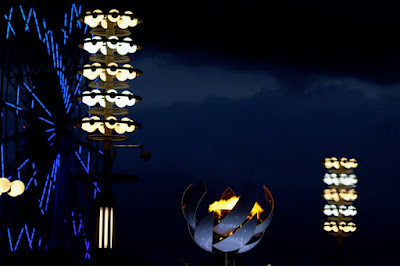 Ideally, the moon could have risen a little further to the left, or, the fencing around the cauldron could have been a little less onerous, to allow the ideal pic of the moon rising over the mini-cauldron. But it was not to be.
