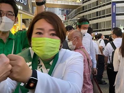 After the JCP, time to swing by the station again to see Koike and her protege Araki...a kind of drawing the circle I suppose--having first come across Araki at my local station and again at Tachikawa Station, on day one of the campaign (including former PMs Abe and Suga at separate speeches).